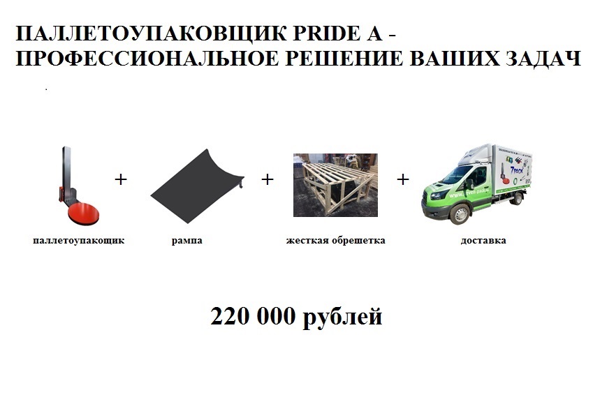 Паллетоупаковщик PRIDE A в комплекте с подъездной рампой, жесткой «обрешеткой» и доставкой по Москве в пределах МКАД - 220 000 рублей!