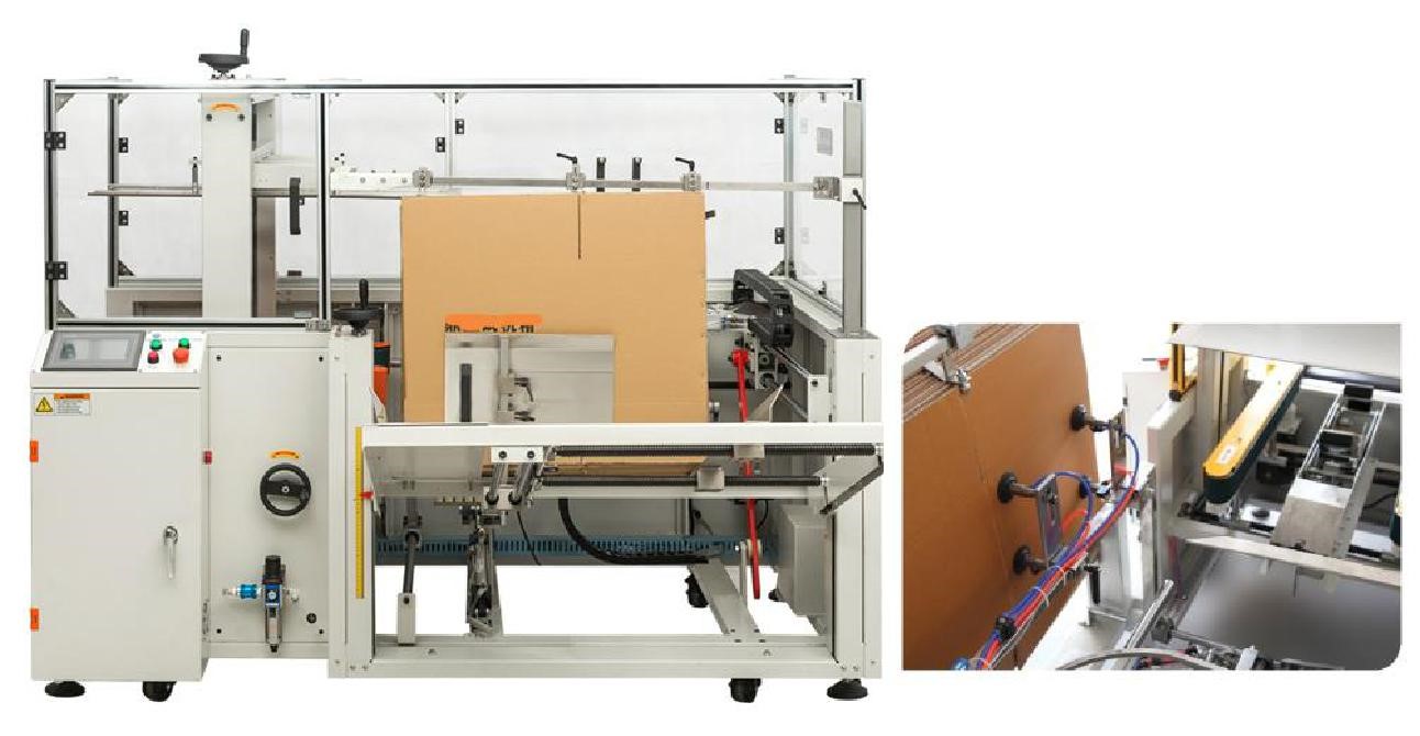 Данная машина подходит для автоматического монтажа картона с изгибом крышки. В аппарате предусмотрена функция автоматической герметизации дна. Это экономичное и высокоэффективное устройство. Данное оборудование идеально подходит для автоматического формирования картона и герметизации дна.