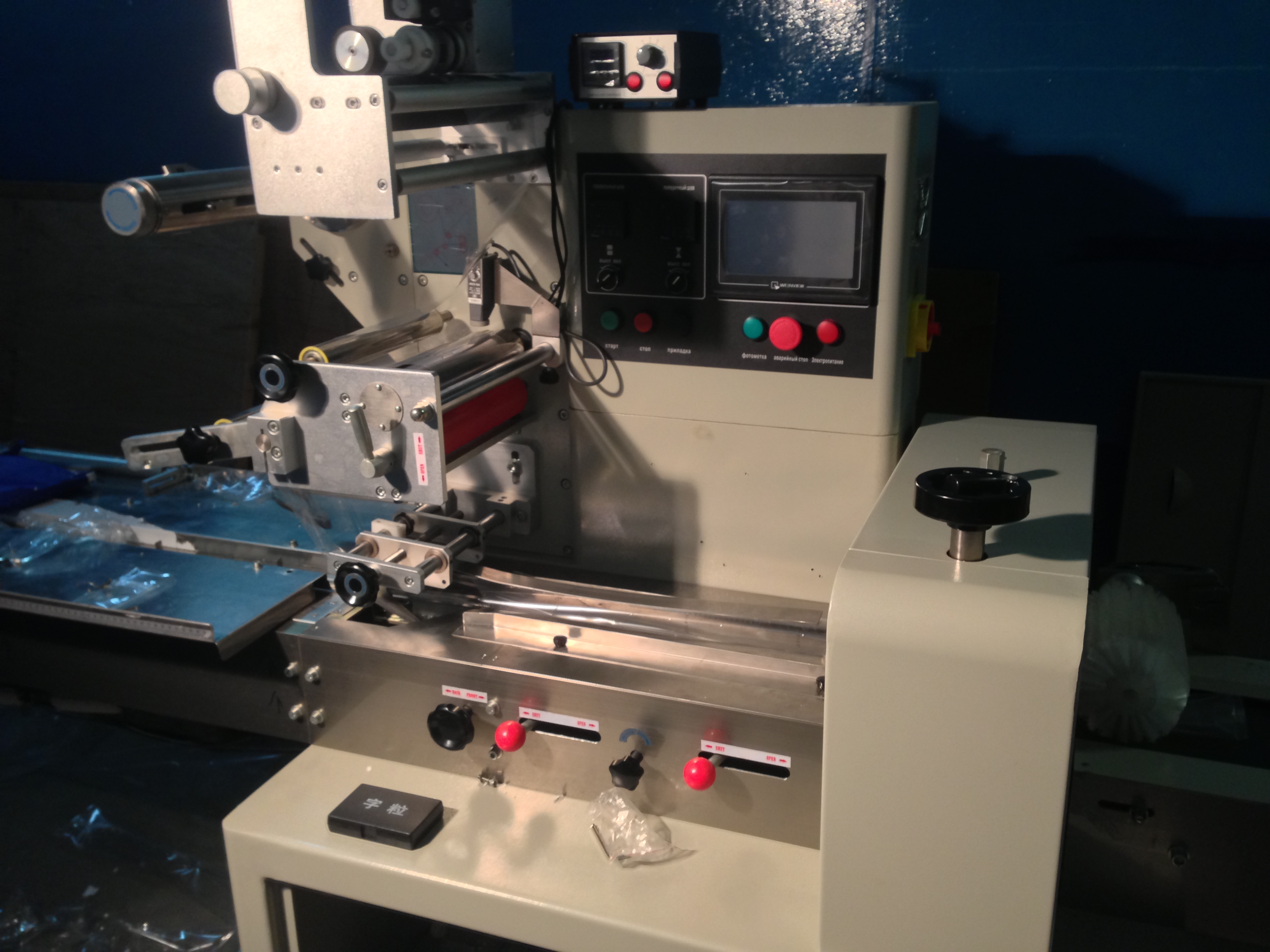 Горизонтальная упаковочная машина ALD-250D с верхней подачей пленки больше всего подходит для упаковки штучных продуктов небольших размеров, таких как: печенье, мыло, конфеты, глазированные сырки и пр. Продукты автоматически подаются в зону упаковки, происходит точная корректировка протяжения плёнки по фотометке и это дает возможность производить качественную упаковку продукта со скоростью до 140 упаковок в минуту. В качестве расходных материалов используются полимерные пленки и ламинированная полиэтиленом бумага. Машина предназначена для создания трехшовных упаковок, формирует продольный шов пакета снизу продукта. Для маркировки продукции, возможно установить термопринтер.