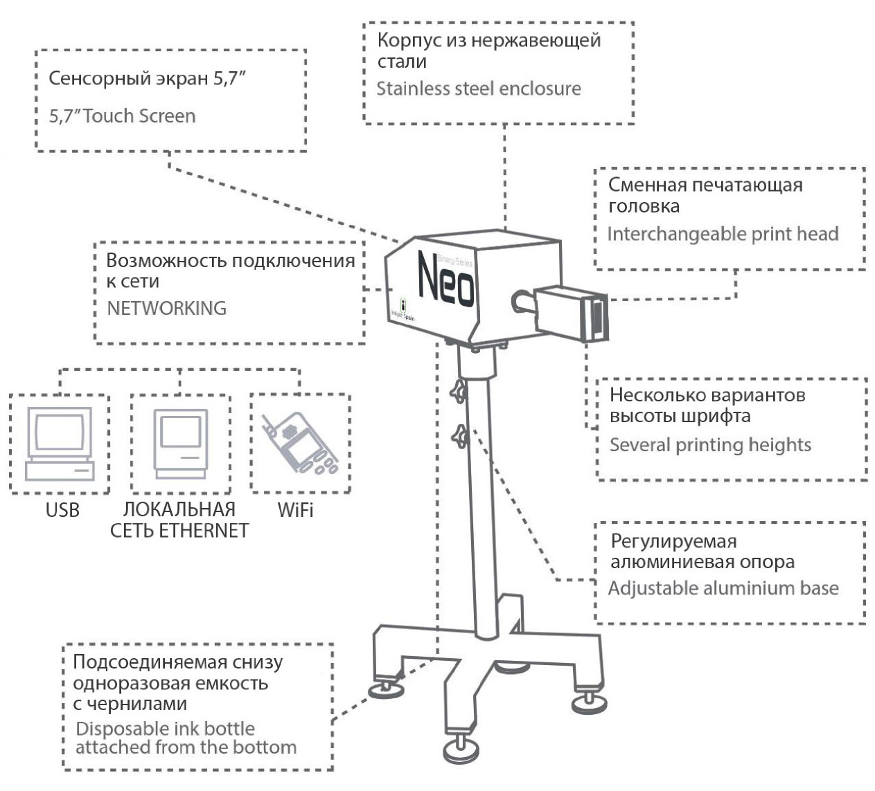 Струйные маркираторы (принтеры) NEO для печати на пористых поверхностях