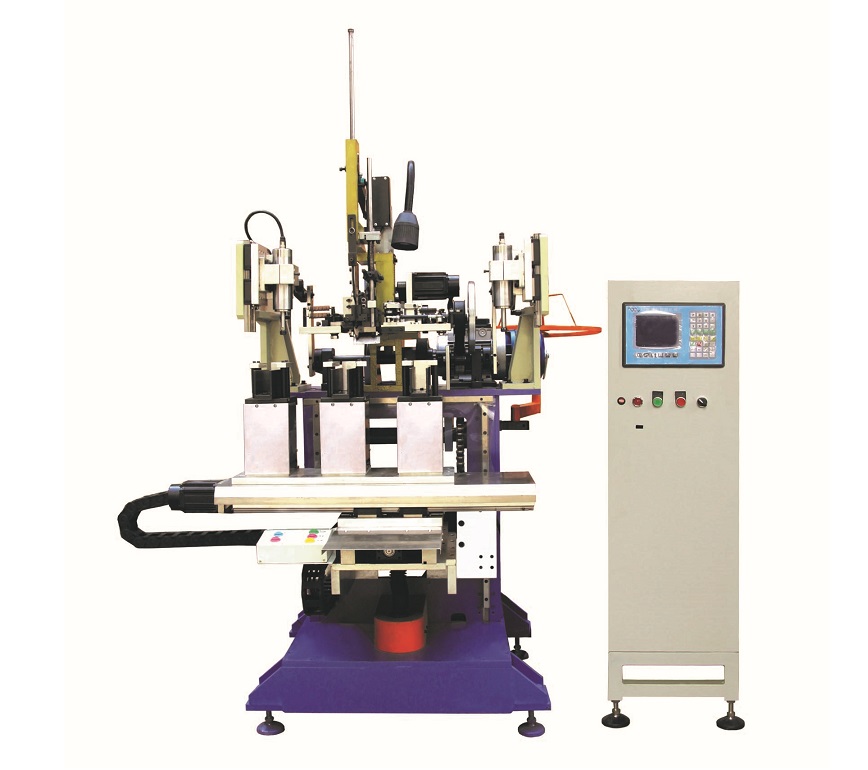 Машина оснащена двумя сверлильными головками и одной набивочной. Осуществляет набивку заранее установленной в крепления основы (пластиковой или деревянной). Благодаря серводвигателю длина поволоки всегда остается одинаковой, а настройки осуществляются с сенсорного экрана. Все быстроизнашивающиеся детали использованы стандартного типа, что позволяет в случае остановки оборудования быстро найти и заменить необходимую деталь даже в случае отсутствия таковой в зип пакете.