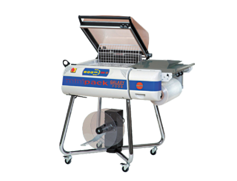 Станок (производство Италия) компактен и экономичен. Предназначен для упаковки любой продукции в пленки ПВХ, ПОФ, ПП. В конструкции не предусмотрены держатель для рулона и фасовочная столешница, что позволяет устанавливать машину на производственный стол. Рабочая поверхность машины изготовлена из нержавеющей стали, что делает машину незаменимой для использования в пищевой промышленности. Другие части выполнены из специального огнеупорного полиуретана, подставка – из хромированных труб.