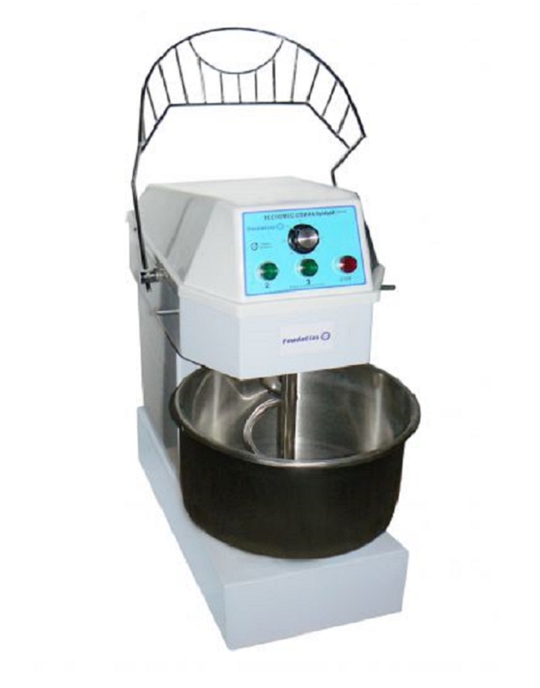 С помощью регулятора скоростей в соответствии с потребностями производства оператор устанавливает заданную скорость замеса теста. Таймер позволяет легко устанавливать и регулировать оптимальное время замеса. В машине используется однофазный источник питания. Привод представляет собой шестеренчатую планетарную передачу. Мешалка и емкость тестомеса одновременно совершают вращательные движения, благодаря чему обеспечивается высокое качество получаемого продукта.