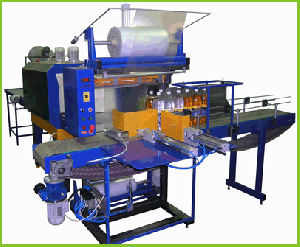 Данная машина применяется на производстве для упаковки  продукции в полиэтиленовую пленку. Линия состоит из 3-х различных независимых модулей:
