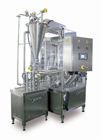 Оснащены 12-типозиционным транспортным ротором. Привод ротора– электромеханический с серводвигателем. Такая комплектация позволяет точно позиционировать продукцию, плавно начинать и оканчивать цикл, а также плавно перемещать тару. Такая особенность позволяет исключить расход и разбрызгивание продукции.