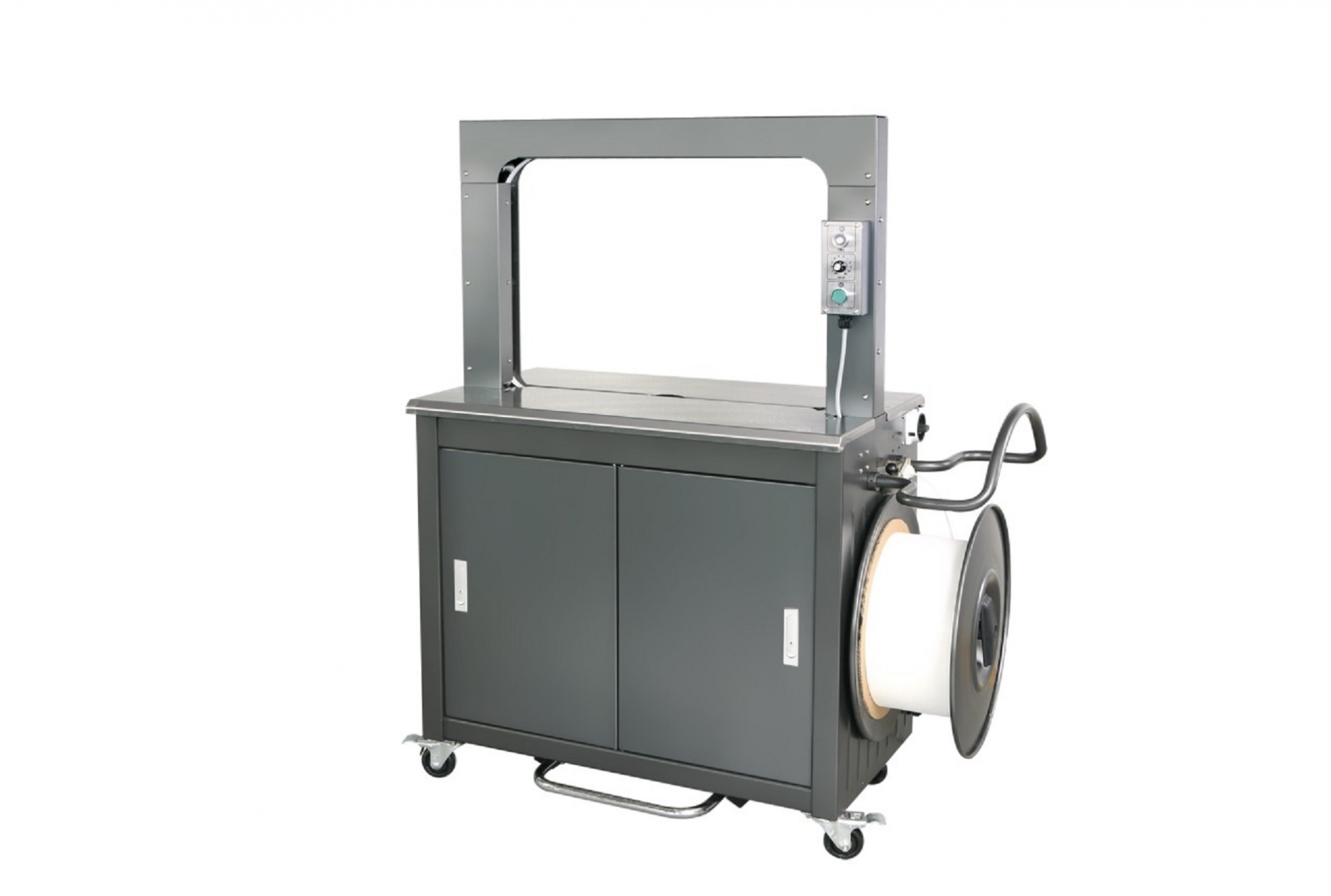 Наиболее мощная машина улучшенной конструкции среди стреппинг-машин данного класса. Зарекомендовала себя, как прочная, надежная и удобная в управлении и обслуживании машина.