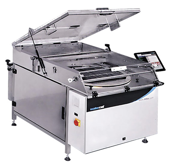 В Бисквитной резке ModelL XPastry используется технология резки водой, позволяющая делать четкие разрезы на хрупкой кондитерской продукции. Резку можно осуществлять как для свежих, так и для замороженных продуктов. При процессе резки водой не происходит смешивания разных слоев изделия.