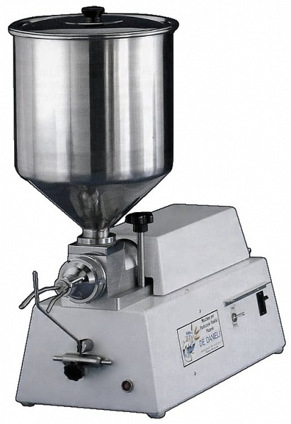 Машина применяется для наполнения булочек, пончиков, слоек, эклеров и других кондитерских изделий джемом, взбитыми сливками и заварным кремом. Дозирование происходит поршневым принципом. Объем дозирования можно регулировать механическим способом. Поддерживает работу, как в ручном, так и в автоматическом режиме. Устройство укомплектовано четырьмя насадками с иглами разного диаметра, а также педалью для комфортного дозирования. Корпус машины изготовлен из окрашенной стали. Бункер выполнен из нержавеющей стали высокого качества. Аппарат очень удобен в эксплуатации и обслуживании.