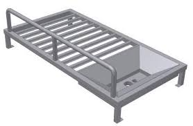 Стол выбрасывающий КРС – это оборудование, на которое попадает оглушенный скот. Далее в лежачей позиции происходит убой и обескровлевание КРС. Кровь стекает в специальную ванну, которая расположена за боксом. Стол выполнен из кислотостойкой нержавеющей стали.