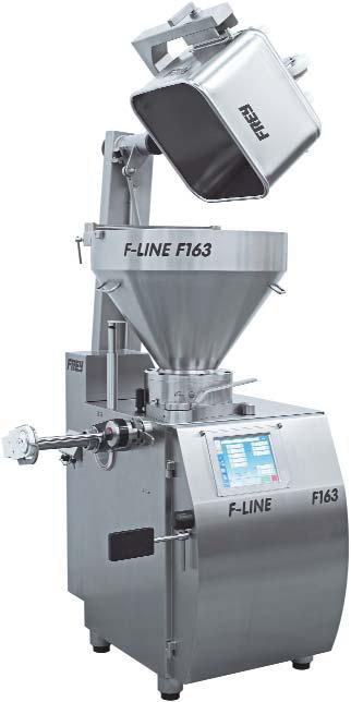 Вакуумный шприц F-LINE F163 предназначен для непрерывного наполнения и порционирования оболочек всех видов. Загрузочная воронка (снаружи и снутри), стойки и корпус машины полностью из нержавеющей стали, что увеличивает срок службы вакуумного шприца. Данная машина легка в управлении, имеет микропроцессорное управление с сенсорным цветным дисплем и выводом на экран информации о продукте. Вас приятно удивит память на 150 программ, в том числе для набивки вареных колбас.