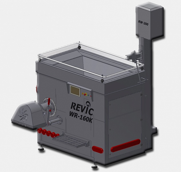Волчок Revic WR-160K разработан для переработки мороженного, свежего или вареного мяса. Благодаря уникальной угловой конструкции данный волчок способен с необычной точностью измельчить любой исходный материал до кусочков нужного размера. Корпус изготовлен из нержавеющей стали, оснащен интегрированным мачтовым подъемником RW-200 с коробкой передач и двухскоростным двигателем системы резки. Переферийное оборудование поможет Вам без труда разделить хрещи и слизистые. А микропроцессорный контроллер уследит за всеми параметрами во время работы.