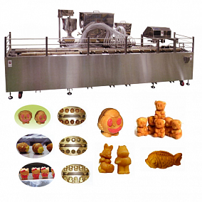 Автоматическая линия "Зоопарк" незаменима в процессе выпечки бисквитов с начинкой в форме зверюшек (наподобие «Барни»).