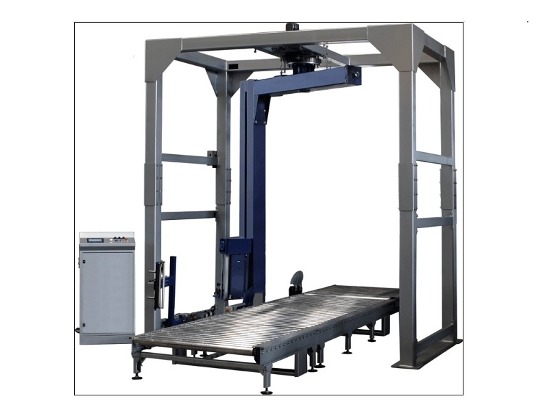 Данное оборудование разработано итальянскими инженерами, произведено в Китае. Упаковка продукции осуществляется в автоматическом режиме при помощи пленки, вращающейся вокруг паллеты. Модель подходит для работы в пыльной среде и упаковки продукции как стройматериалы, мешки с мукой. Конструкция каретки предусматривает усиленную фиксацию груза на поддоне при помощи образования жгута из стретч-пленки.