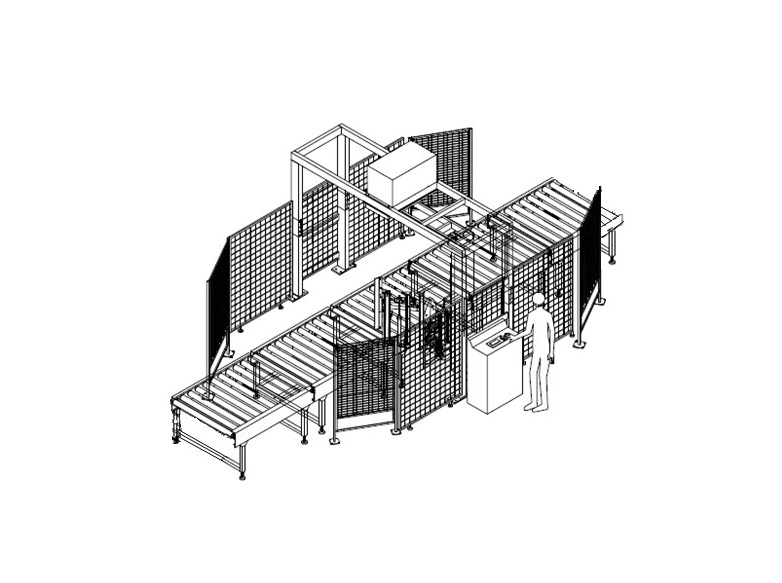 Обмотка груза происходит при помощи вращающегося поворотного стола, на который паллета загружается автоматически. На конвейер паллеты могут поступать как при помощи вилочного погрузчика, так и автоматически с паллетайзера или конвейерной линии. Роликовый приводной конвейер для перемещения паллет заказывается отдельно, устанавливается на входе/выходе паллетоупаковщика.