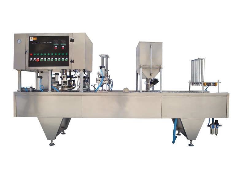Оборудование предназначено для наполнения и запечатывания пластиковых стаканов или чашек. Эти емкости могут быть заполнены жидкостью или пастообразной массой - желе, молочным мороженым, кокосовой мякотью, фруктовым джемом и т.д. Аппарат автоматически располагает емкости идеально ровно, в результате чего резка краев осуществляется аккуратно и точно.