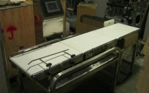 Принцип работы чеквейера заключается в трех независимых друг от друга конвейерах, каждый из которых выполняет свой участок действий: первый разделяет продукцию, второй взвешивает, третий перенаправляет или отбраковывает продукт благодаря встроенной в чеквейер FP-4000 пневматической функции отбраковки. Этот аппарат удобно использовать перед упаковочной машиной для конечного взвешивания упаковываемой продукции в целях контроля веса или ее сортировки по весу в целях удаления продуктов с несоответствующим весом.