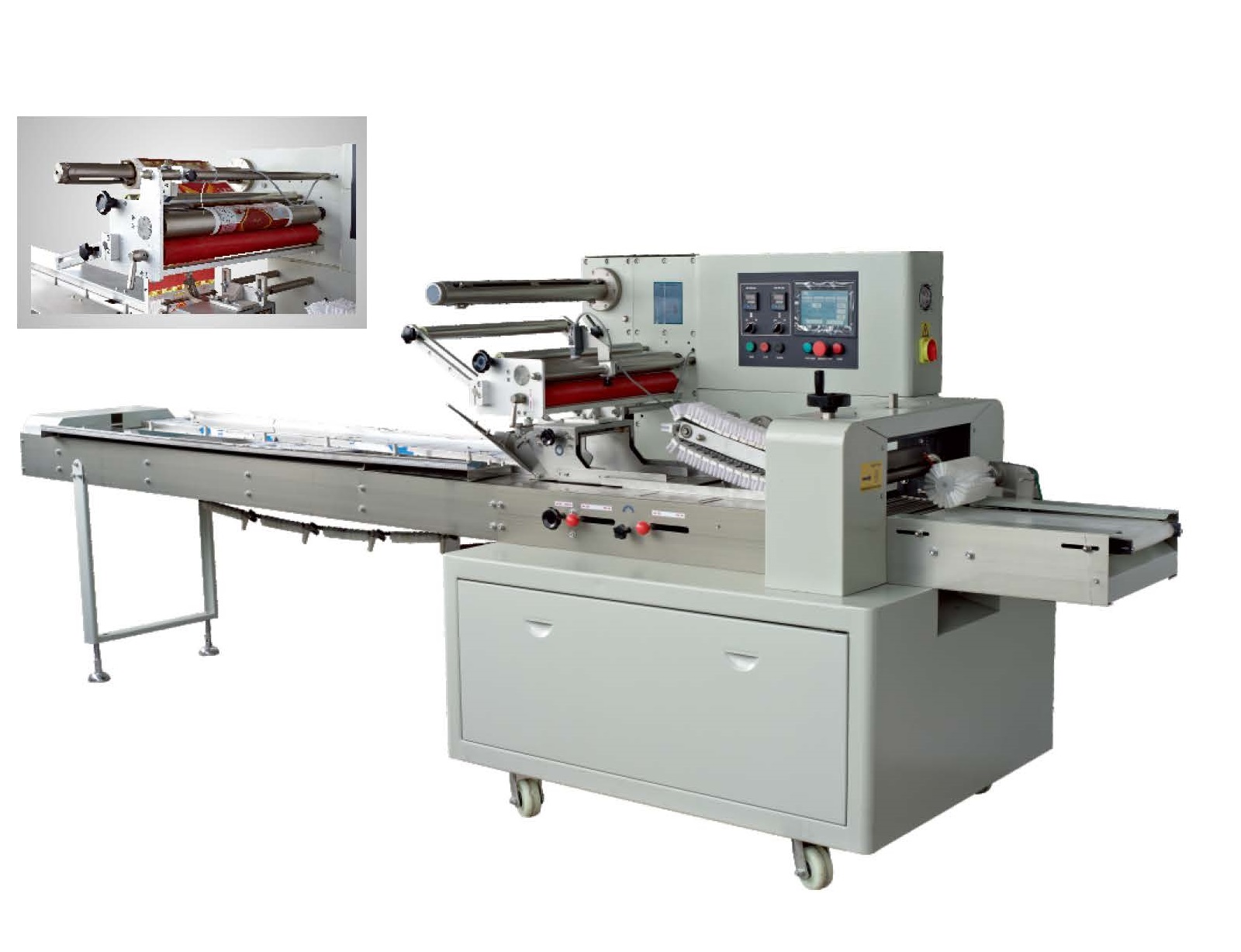 Наиболее часто такие машины применяются для упаковки булочек, хот-догов, ватрушек и других товаров, где продольный шов упаковки не должен закрывать внешний вид.