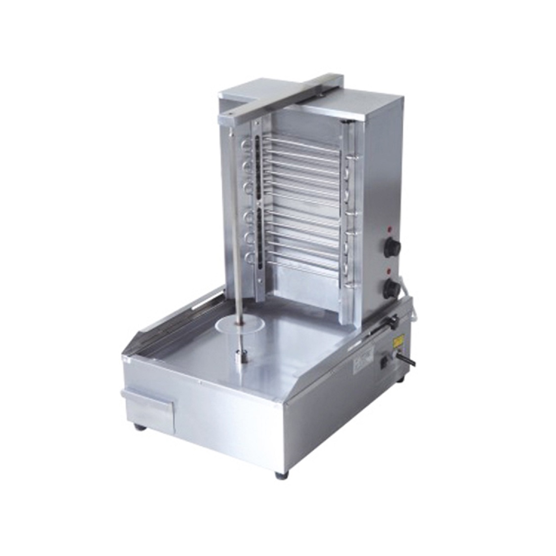 Данная модель предназначена только для производственного использования – быстрой обжарки мяса в магазинах, кафе, столовых и прочее. В комплектацию входит поддон для масла; для регулировки температуры 3 нагревательных элементов используются 2 чувствительных датчика. Аппарат изготовлен из нержавеющей стали (корпус марка 430, шампуры и поддон – марка 201).