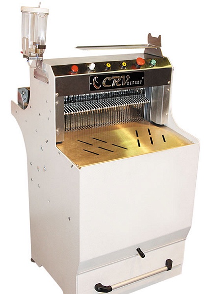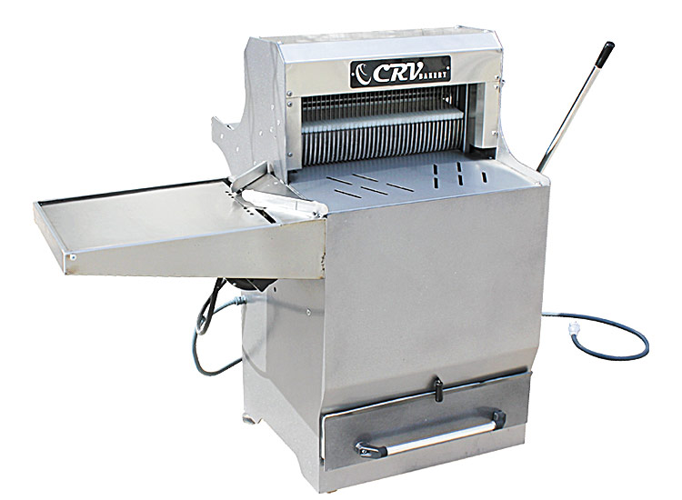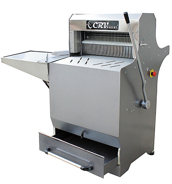 Оборудование применяется для непрерывного процесса нарезания хлеба. Широко используется в общепите, магазинах, кафе и пекарных производствах небольшого формата. С помощью второй ленты, находящийся сверху, продукт не накладывается друг на друга, а его высота выставляется в зависимости от его размеров. Станок имеет ручку для регулирования, благодаря которой изделие не раздавливается. Функция регулировки скорости позволяет делать нарезку на любой скорости. Все части машины, которые соприкасаются с продуктом, изготовлены из стали высокого качества. Работа происходит бесшумно и полностью исключает вибрации. Хлеборезка CRV EDM 002 легко эксплуатируется и обслуживается.