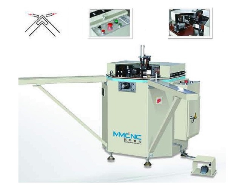 Машина используется для комбинированной угловой вырубки алюминиевых окон и дверей, есть возможность одновременного соединения одного угла.