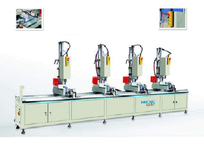 Машина используется для угловой вырубки алюминиевых окон и дверей, есть возможность одновременного соединения четырех углов.