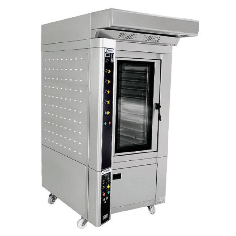 Внутри печи имеется два вентилятора, подающих горячий воздух в печь и регулирующих подачу тепла. Внизу печи есть камера для брожения теста. Печь сделана полностью из нержавеющей стали.