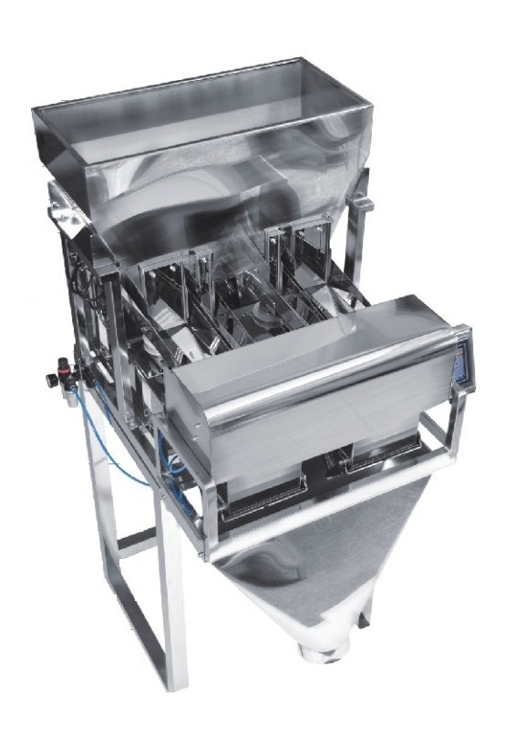Линейный весовой дозатор LW-2/8.0-GS используется для точного автоматического дозирования мелкоштучных и сыпучих товаров: круп, сухариков, орехов, пельменей, чипсов, замороженных овощей и пр.