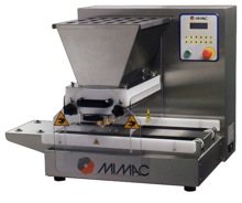 Отсадочная машина серии Mimac BABYDROP удобна в эксплуатации, т.к. имеет маленькие габариты. Основной особенностью машины является наличие микропроцессора, который позволяет управлять всеми её функциями, за чем легко можно наблюдать с жидкокристаллической панели управления. Наличие механизма, контролирующего скорость работы дозировочной группы, позволяет бесперебойно работать с тестом любой густоты. В аппарате предусмотрен контроль времени и скорости движения противней; автоматизировано начало отсадки. Машина предотвращает комкание теста за счет обратного вращения валков.