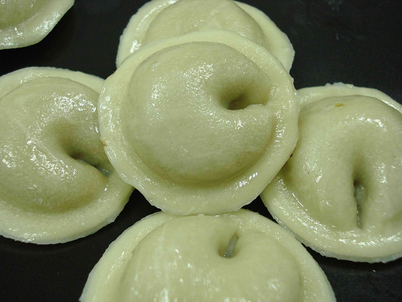 • пельмени (в виде полусферы, псевдозащипа, полумесяца, рыбки, черепашки, сферы, квадратные, в виде солнышка);