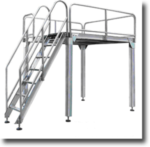 Платформа обслуживание является неотъемлемым элементом производственного процесса. Оборудование состоит из лесницы, ограждения и опор для безопасной работы оператора. Специальные борта расположенные по краям платформы предотвращают падение инструментов или других предметов. Перед преобретением аппарата необходимо точно знать высоту потолка помещения, так как высота платфформы вместе с дозатором может достигать 4 м. Подача продукции на высоту происходит с помощью специального ветрикального конвейера.