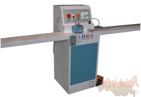 Подача пильного диска осуществляется после нажатия на специальную педаль. Электродвигатель защищен от скачков напряжения и перегрева. Станок безопасен для работы, есть кнопка аварийного выключения оборудования, при этом двигатель и пневмоприжим останавливаются.