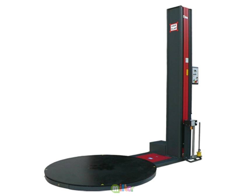 Данный паллетоупаковщик разработан компанией Ear-flap(Испания). Станок оснащен ПУ с микропроцессором, программы задаются в зависимости от нужд производства. Прост в обслуживании и эксплуатации, качество выполняемых работ – наравне с более дорогими моделями. Предусмотрено несколько опций, в том числе несколько видов кареток (устанавливаются по заказу). Работа данного станка характеризуется плавным запуском и остановкой поворотного стола, что достигается наличием инвертеров. Работа оператора сводится к следующим несложным действиям – установка паллеты на поворотный стол, закрепление пленки, запуск процесса, обрезание пленки, снятие упакованной паллеты.