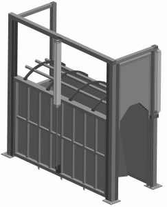 Бокс глушения используется с целью обездвижения КРС во время оглушения. Устройство производится в форме клетки.
