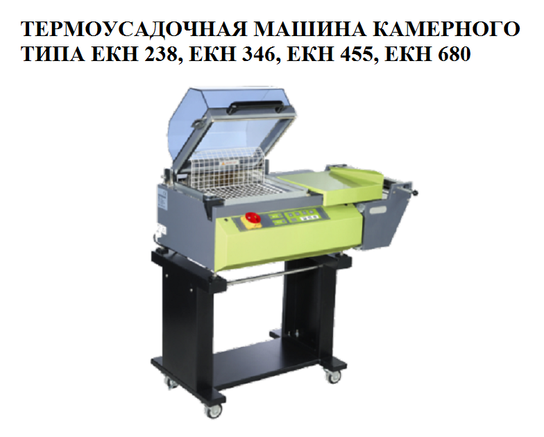 Станок состоит из Г-образного обрезчика и термокамеры, команды задаются на панели управления. Продукт или группа товаров помещается в заранее отмерянную пленку. Крышкой камеры с термоножом осуществляется обрезка пленки и сваривание ее по краям. Упакованный товар отправляется в камеру, где осуществляется усадка пленки посредством горячего воздуха. Время усадки регулируется в зависимости от продукта.