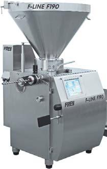 Вакуумный шприц F-LINE F190 предназначен для перекручивания, порционирования и непрерывного наполнения оболочек всех видов. Загрузочная воронка (снаружи и снутри), стойки и корпус машины полностью из нержавеющей стали, что увеличивает срок службы вакуумного шприца. Данная машина легка в управлении, полностью автоматизирована, имеет удобный сенсорный цветной дисплей с выводом на экран информации о продукте. Вас приятно удивит память на 150 программ, в том числе для набивки вареных колбас. Модель F-LINE F190 оснащена устроством расхода сырья.
