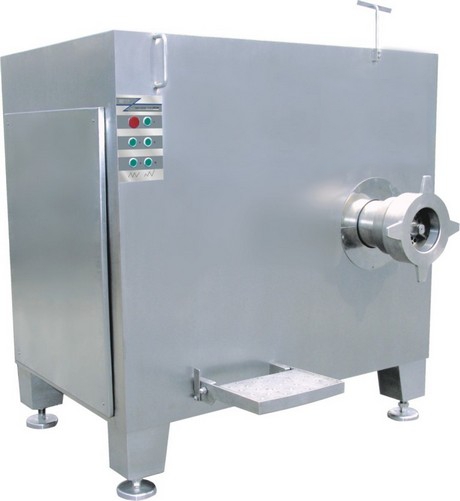 Волчек JR 160 – это прекрасная промышленная мясорубка, у которой очень высокая производительность за счет того, что эта модель обладает двумя шнеками. На выходе можно получать около 7-8 тонн продукта в час. Мощные шнеки имеют скорость работы 300 оборотов в минуту. Волчек способен перемолоть даже замороженное мясо, так как он имеет высокую мощность. Это преимущество дает возможность готовому фаршу сохранять свежесть на порядок дольше. Привод волчка и его составные части, надежно скрыты, что отвечаем нормам безопасности, и риск травмироваться при работе с этим оборудованием минимален.