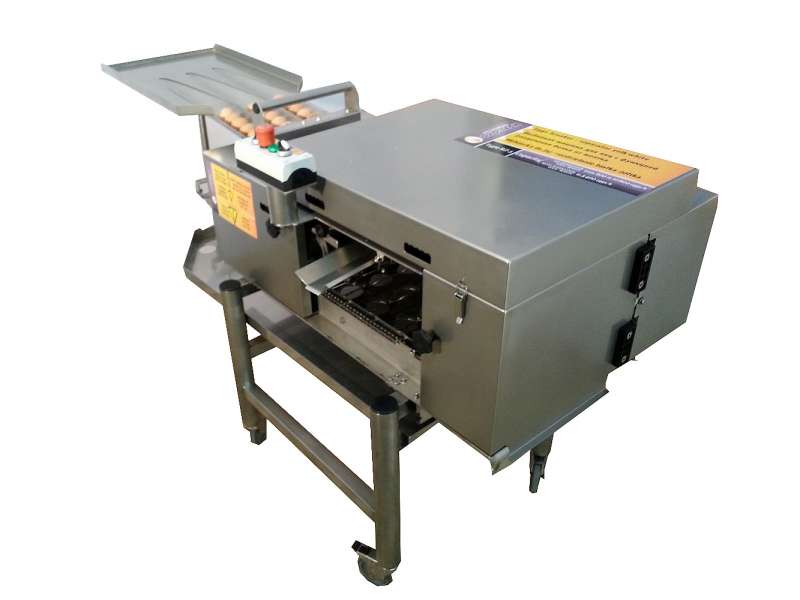 Станок аккуратно подбирает и разбивает яйца, после чего их содержимое скатывается в специальную ванночку, а скорлупа откидывается в приготовленную емкость. Треснувшие в ванночке желтки можно удалить при помощи ложки.