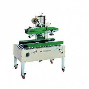 Это оборудование итальянского производства является стационарной системой, предназначенной для заклеивания коробов из гофрированного картона различных, в том числе и нестандартных, размеров. Проклейка лентой-скотчем производится с двух сторон: верхней и нижней. Наличие выступов конвейерной ленты с обеих сторон позволяет интегрировать заклейщик с линией по складированию товара в короба и аппликатором, предназначенным для нанесения этикеток. Является полуавтоматическим, т.к. требуется механическое закрывание верхних створок короба. Заклейщик оснащен двумя направляющими, приводящимися в действие приводными ремнями и одним двигателем. Требуется ручная настройка под определенные размеры коробов.